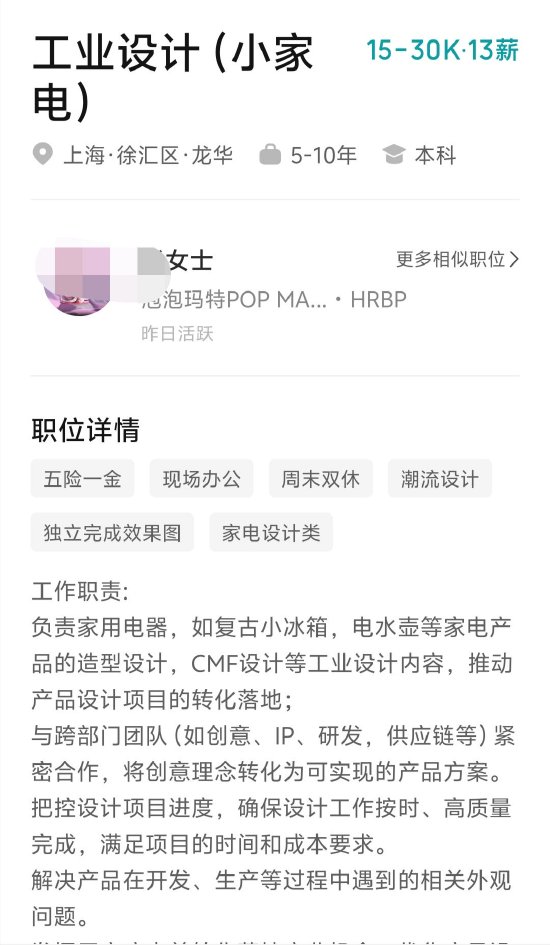 新浪科技从多家招聘平台查询发现,泡泡玛特确实正在招聘家电领域相关人才,包括家电方向项目管理、工业设计(小家电)等岗位。